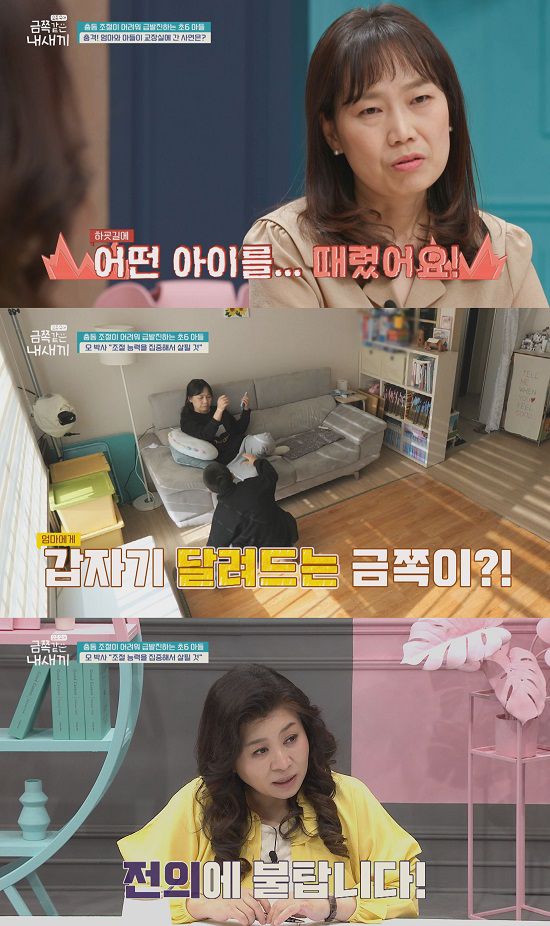 이어 "금쪽이가 화를 주체하지 못하고, 지나가던 친구를 일방적으로 때렸다"라면서, 충동 조절에 어려움을 겪는 아들에 대한 고민을 토로한다.