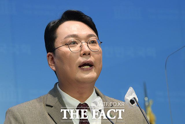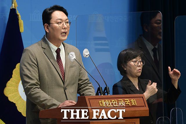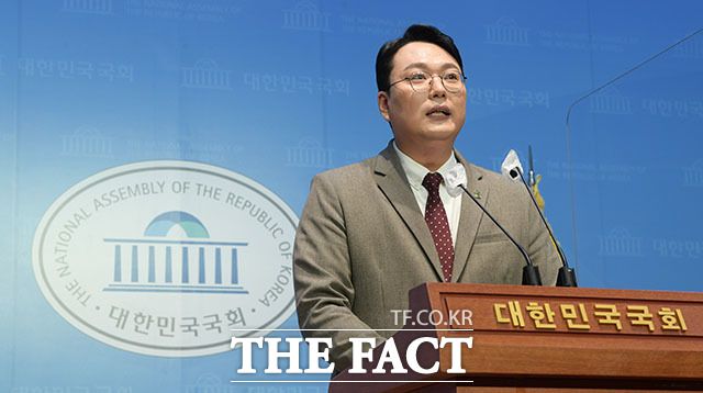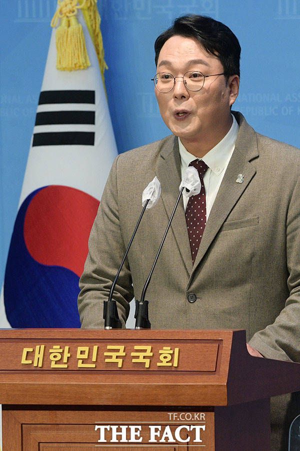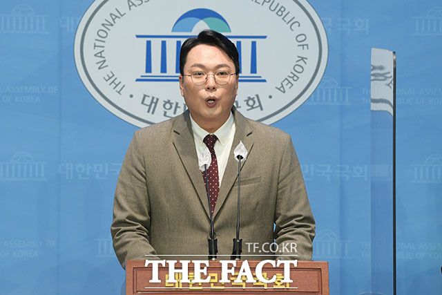 [더팩트ㅣ국회=남윤호 기자] 천하람 국민의힘 전남 순천갑 당협위원장이 3일 오전 서울 여의도 국회 소통관에서 당 대표 출마 선언을 하고 있다.