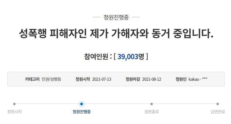 A씨는 2016년부터 초등학생이었던 친동생 B씨를 성추행하거나 성폭행한 혐의로 2021년 2월 기소됐다. B씨는 1심이 진행되던 그해 7월 ‘성폭행 피해자인 제가 가해자와 동거 중입니다’라는 청와대 국민 청원을 올렸다. 사흘 만에 답변 기준인 20만명을 넘었다.
