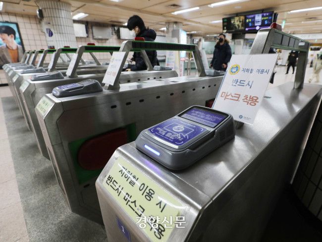 지난해 12월 서울 시내 한 지하철역의 개찰구 모습. 강윤중 기자 |