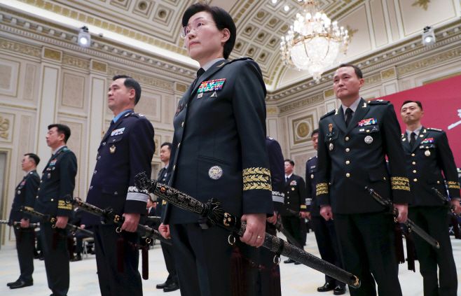 준장 진급자에게 주어지는 삼정검은 호국, 통일, 번영의 의미를 담고 있다.