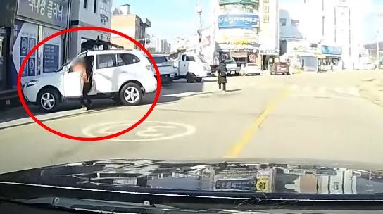 영상 제보자는 “운전자들의 주의가 필요할 것 같아 제보한다”며 “후진 기어를 넣어 둔 채 차량에서 내리려는 순간 차가 뒤로 후진하면서 일어난 황당한 사고”라고 설명했다.