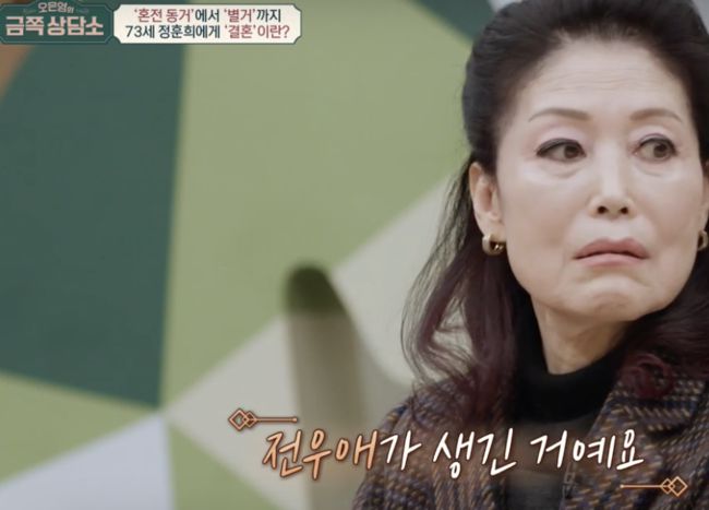 하지만 현재 두 사람은 별거 중인 상태. 성향차이로 각방에서 각집살이가 됐다고 했다. 이에 오은영은 “별거 아닌 분거부부”라고 말하기도. 그러면서 정훈희에게 결혼에 대한 의미를 물었다. 정훈희는 “사랑하니까 같이 있자는 생각으로 결혼, 출산 후엔 아이를 함께 키우는 친구였다”면서 “중년이 됐을 때는 동지, 노년의 부부는 전쟁터에서의 전우다”고 했다.