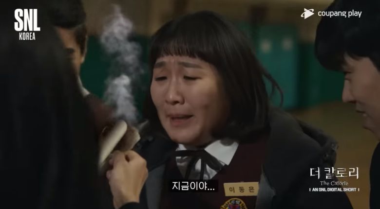 하지만 'SNL 코리아' 속 코너 '더 칼로리'에서는 학교 폭력을 '살'로 비유해 쥐포를 태우며 피해자를 괴롭히고, 피해자는 가해자에게 살 찌는 음식을 먹이며 복수에 성공하는 이야기를 넣었다.