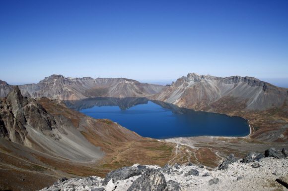 백두산 천지의 모습. 평양사진공동취재단 |