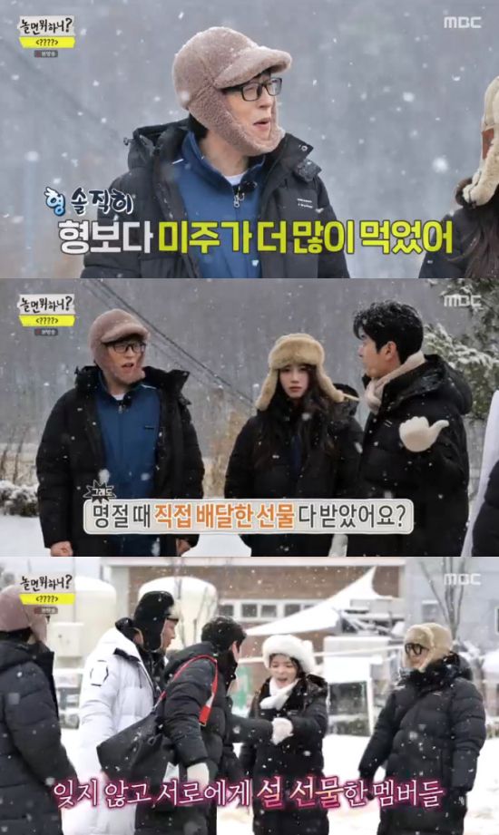 또 이이경은 "명절 때 (정준하가) 직접 배달한 선물 받았냐"라며 고마움을 드러냈고, 유재석은 "준하 형이 걱정이 됐는지 내 매니저한테 전화를 5통 했다. 잘 먹었다. 한편으로는 정이 넘치니까 좋긴 하다"라며 전했다.
