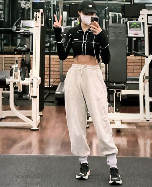 4일 설현은 거울 셀카 한 장과 함께 "오늘도 운동 완료"라는 글귀를 적었다. 사진 속 설현은 마스크와 모자를 챙겨 쓰고 운동하기 편한 조거 팬츠에 운동화, 그리고 몸에 딱 붙는 크롭 후드를 걸쳤다.