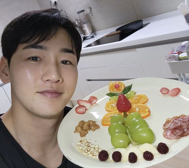 4일 박군은 "첫줄 오늘은 빠텐더 임무 수행 편의점 칵테일에 냉동 냉장고 다 털어서 안주 한 접시 완성"라는 글귀와 함께 여러 장의 사진을 공개했다. 박군은 "#과일공예"라는 해시태그도 달았는데, 과연 플레이팅 솜씨는 수준급이었다. 그는 오렌지 한 알, 딸기 하나로 깜찍한 느낌을 자아냈고 이외에도 샤인 머스캣 등으로 과일을 알차게 마련했다. 또한 훈제 고기도 곁들여 먹음직스러운 안주 접시를 만들었다.