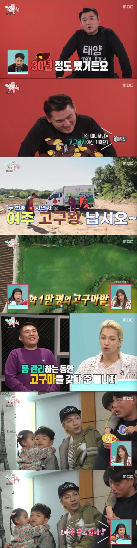 태양 매니저 김경래 씨는 "우리 집이 고구마 농사를 30년 가까이 지었다"고 말했다. 매니저의 아버지는 여주 고구왕이라고 불리며 1만 평의 고구마밭을 소유했다.