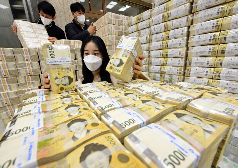 지난달 17일 오후 경기도 수원시 장안구 한국은행 경기본부(경기남부 17개 시 관할)에서 직원들이 설을 앞두고 발행할 현금을 검수하고 있다.[연합]