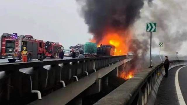 앞서 소셜미디어 웨이보에는 승용차와 화물차 수십 대가 뒤엉켜 있거나, 차량 여러 대가 불타는 영상 등이 올라왔다. 운전자와 탑승자들이 반대편 차선의 차량을 향해 구조를 요청하는 영상도 게재됐다.