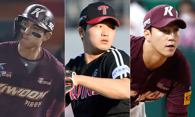 왼쪽부터 키움 이정후, LG 고우석, 키움 안우진.