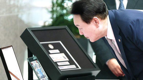 윤석열 대통령이 최근 주변에 국민의힘 전당대회 주자인 안철수 의원을 비판하는 발언을 했다고 한다. "무례의 극치"라는 표현까지 썼다는 게 대통령실 주변의 전언이다. 사진은 지난 3일 용산 대통령실 청사에서 열린 아랍에미리트(UAE) 바라카 원자력발전소 관련 기업인 오찬 간담회에서 원전 방문시 양국 정상간 교환한 기념물을 살펴보고 있는 윤 대통령. 사진 대통령실