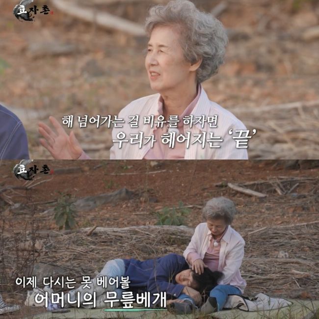 또 어머니는 “사람은 만나면 헤어지고 또 가면 오고 영원이란건 없단다 사람은 바람처럼 물처럼 그렇게 사는 거야 너 ‘나가 없고 하나야 다. 흘러가는대로 그리 살아라 편하게 그리 살아라. 남들 사는 것처럼 해서 좀 살면 좋겠다. 내 진심이다. 마음 아프다. 장가도 가보고 금방이다. 뭐하노 그리 살면 마지막으로 부탁한다. 그 전에는 생전에 이런 말도 못하는데 여기 효자촌에 와서 참 좋은 기회네”라며 마지막 말을 건넸다.