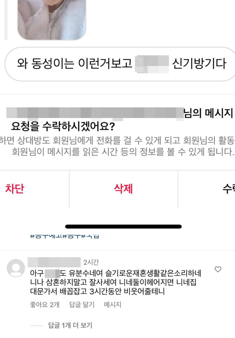 인민정이 공개한 악플에는 "와 동성이는 이런 거 보고 XXX 신기방기다"라는 성희롱적 표현이 담겨 있어 충격을 주었다.