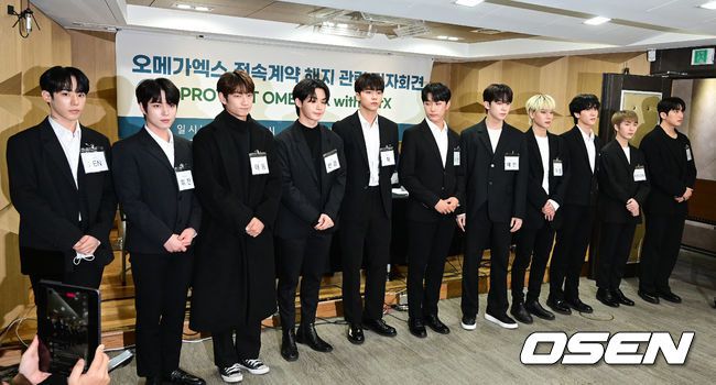 [OSEN=지형준 기자]16일 오후 서울 서초구 변호사회관에서 그룹 오메가엑스 전속계약 해지 관련 기자회견을 열렸다.