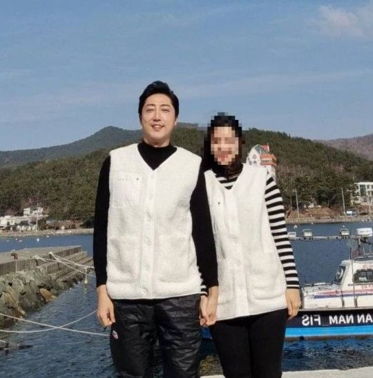 사진에는 손헌수와 예비신부가 바닷가를 배경으로 손을 꼭 잡고 활짝 웃고 있는 모습이 담겼다. 자연스러운 옷차림에도 청순한 미소를 짓고 있는 여자친구의 미모가 눈길을 끈다.