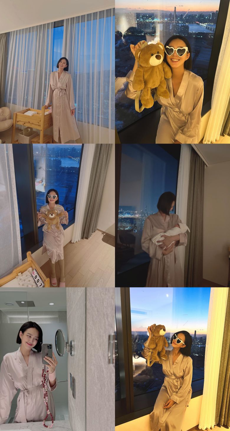 그러면서 "제가 엠버서더로 있는 로브 브랜드에서 특별히 제작 해주신 샴페인 컬러의 로브에요. 요기 브랜드는 쨍한 컬러들의 로브도 매력적인데 요렇게 고급스러운 너낌의 샴페인 컬러도 너무 이쁘지 않나요~? 저 뷰 좋은 조리원의 필수 아이템입니다. ㅎㅎㅎ두번째, 귀여운 인형 챙기기 (뽁뽁이 친구) 우리 뽁뽁이가 세상 밖으로 나와 하루하루 다르게 성장하는 모습을 사진으로 남길 때 귀여운 친구와 함께 찍어줬어요~ 세상에 나올 때 너무 크게 나와서 애기 옷들이 안맞으면 어떡하지 그랬는데 하루가 다르게 붓기 빠져가는 모습이 애기는 애기네요ㅎㅎㅎ나중에 뽁뽁이가 커서 이 곰돌이 가방을 메고 우리 손을 잡고 걸어다닐 상상만으로 기분이 좋아지네요,,,"라며 덧붙였다.