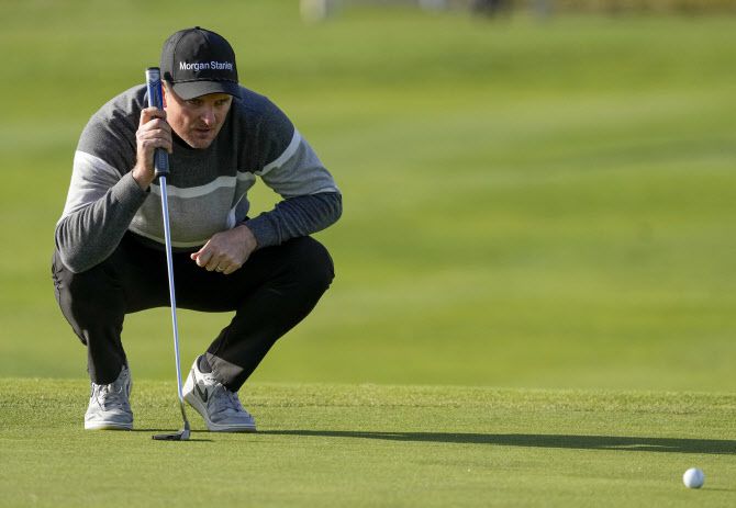 저스틴 로즈가 6일 열린 PGA 투어 AT&T 페블비치 프로암 최종 4라운드에서 퍼팅 라인을 읽고 있다.(사진=AFPBBNews) |