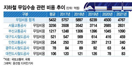 이에 따라 각 지자체 도시철도공사가 부담하고 있는 노인 무인승차 관련 비용은 수천억에 달한다. 국토교통부에 따르면 지난 2017년~2021년 도시철도 무임수송에 소요된 비용은 연 평균 5432억원에 이른다. 2021년 기준으로 △서울교통공사 2831억원 △부산교통공사 1090억원 △대구도시철공사 459억원 △인천교통공사 240억원 △광주도시철도곳아 64억원 △대전도시철도공사 83억원 등이다. 이에 따라 수송 인원이 가장 많은 서울교통공사의 경우 1조원에 가까운 적자가 발생하고 있다. 서울교통공사에 따르면 2020년 당기순손실이 1조1137억원, 2021년 당기순손실은 9644억원을 기록했다.