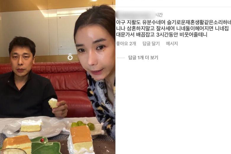 함께 공개된 사진 속에는 "슬기로운 재혼 생활 같은 소리 하네. 너나 삼혼하지 말고 잘 살아라. 너희 둘이 헤어지면 너희 집 대문 가서 배꼽 잡고 2시간 동안 비웃어 주겠다"라는 악플러의 댓글이 담겨있다. 이어진 사진에서는 성적 희롱 내용이 담긴 메시지가 공개돼 충격을 더했다.