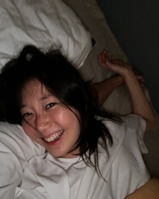 이유영은 최근 편안한 차림을 하고 침대에 누워서 찍은 사진들을 공개했다.