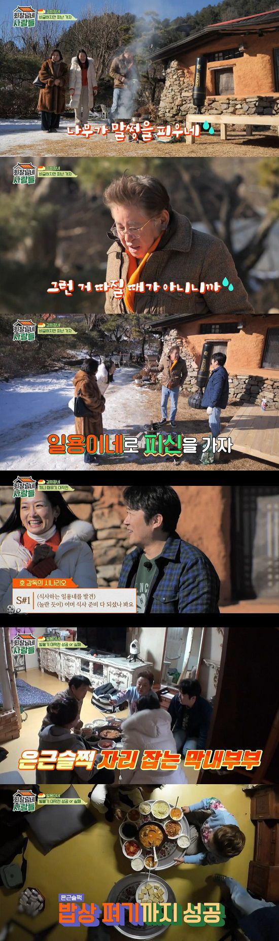임호는 "나무가 젖었다"고 토로, 김용건은 장작을 옷 안에 넣으며 "내가 녹여주겠다"고 너스레를 떨었다.