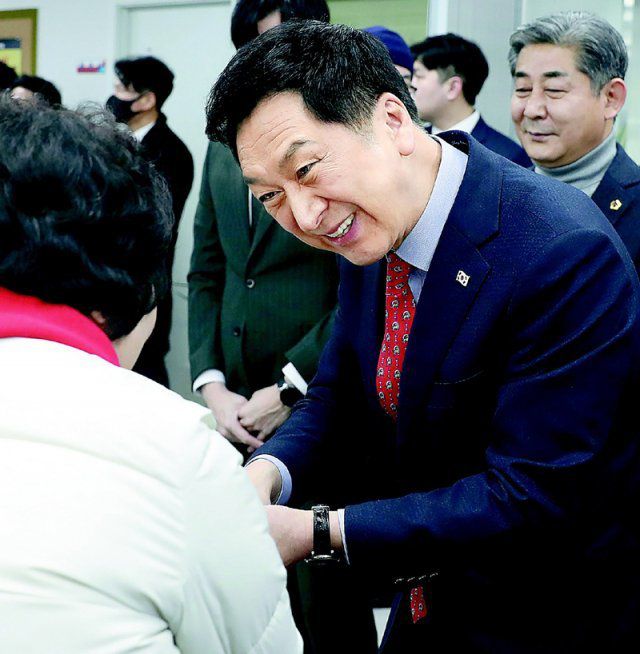 인천 간담회 간 김기현 국민의힘 당권주자인 김기현 의원(붉은 넥타이)이 6일 인천 연수구 국민의힘 인천시당에서 열린 간담회에 참석해 인사하고 있다. 전날 김 의원은 전당대회 불출마를 선언한 나경원 전 의원을 찾아 강원 강릉으로 가 “윤석열 정부의 성공을 위해 함께하자”고 말했다. 인천=뉴시스 |