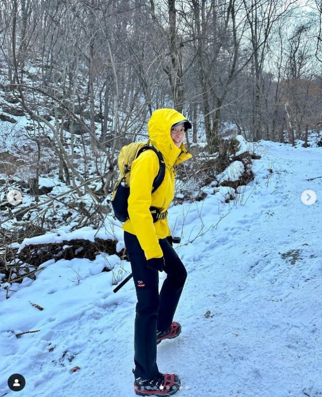 사진 속 이시영은 소백산 등반에 나선 모습이다.