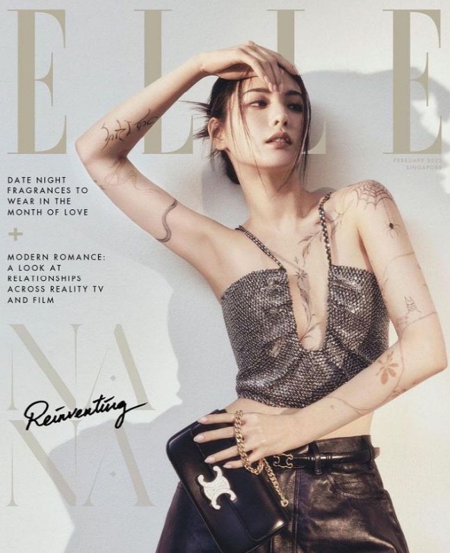 6일 나나는 자신의 채널에 패션지 ‘엘르’ 싱가포르 화보를 공개했다. 그는 에디터, 사진작가, 스타일리스트, 메이크업 등 화보에 도움 준 사람들의 이름도 적었다.