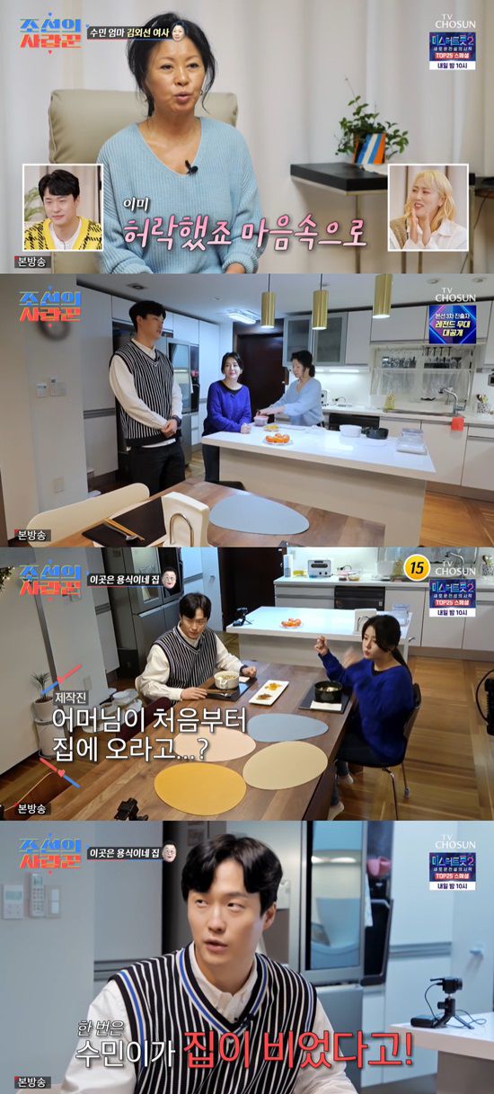 처음부터 집에 오라고 하셨냐는 물음에 원혁은 "예전에 한 번 수민이가 집이 비었다고. 와보라고 하더라"고 말해 눈길을 끌었다. 그런데 1,20분 만에 어머니가 집으로 돌아왔다고. 어머니는 "남자를 끌어들여?"하며 장난스럽게 반응했다고 했다. 김외선 씨는 "수민이가 결혼할 생각도 할 나이니까 엄마들은 준비를 하지 않나. (원혁에 대한) 사전정보도 다 알고 있었고"라며 당시를 떠올렸다.