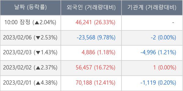 [표] 외국인ㆍ기관 순매매량 (단위 주)