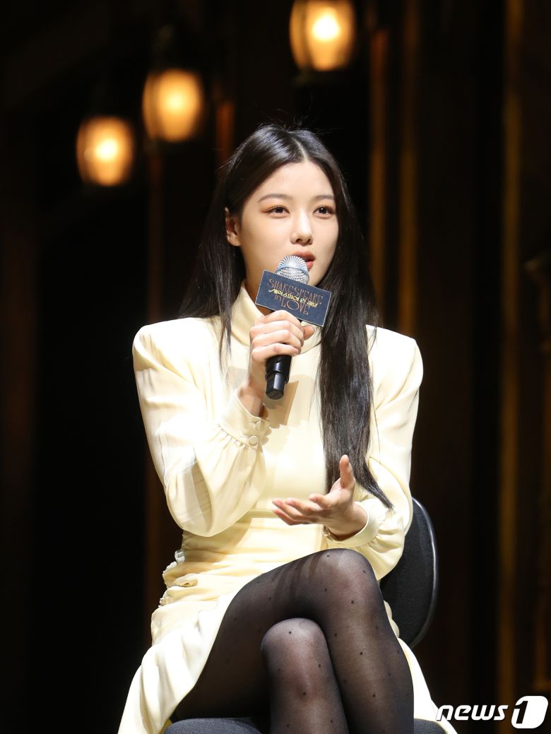 (서울=뉴스1) 권현진 기자 = 배우 김유정이 7일 오후 서울 서초구 예술의전당 CJ 토월극장에서 열린 연극 ‘셰익스피어 인 러브’ 기자간담회에서 인사말을 하고 있다. ‘셰익스피어 인 러브’는 슬럼프에 빠져있던 셰익스피어가 연극 배우를 꿈꾸는 여성 비올라와 애절한 사랑에 빠지고, 이를 바탕으로 세기의 걸작인 ‘로미오와 줄리엣’을 써내려 간다는 내용의 동명의 영화(1998)를 원작으로 한다. 2023.2.7/뉴스1