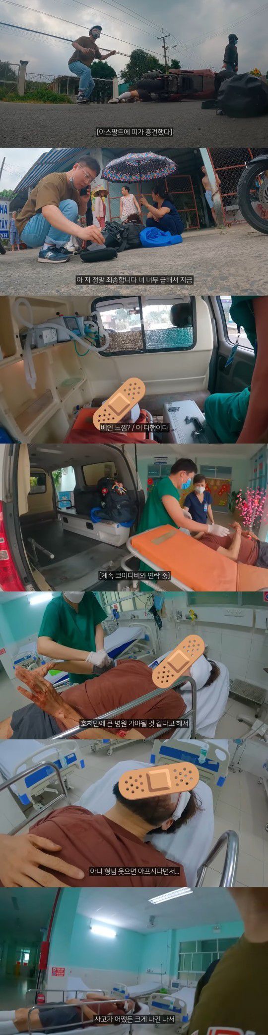 빠니보틀은 곽튜브에게 사고에 대한 자세한 이야기를 전하며 "노홍철 형님이 말할 때마다 입에서 피 냄새가 났다"며 "당시에는 정말 심각했다"고 했다.
