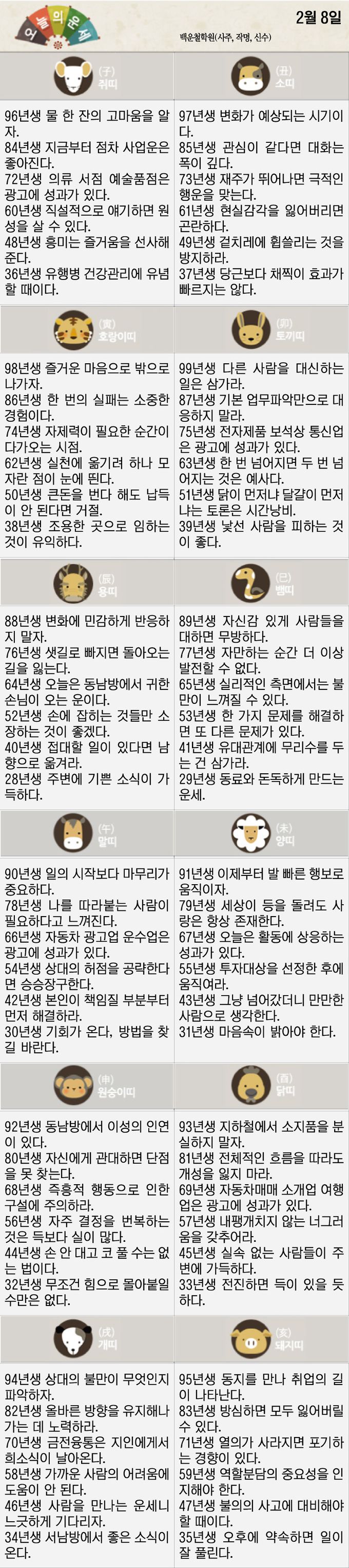 [재미로 보는 오늘의 운세] 2월 8일 (수요일)