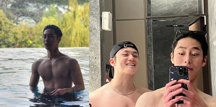 게재된 사진 속 이재욱은 신승호와 함께 상의 탈의를 하고 거울 셀카를 찍고 있는 모습이 담겨있다.