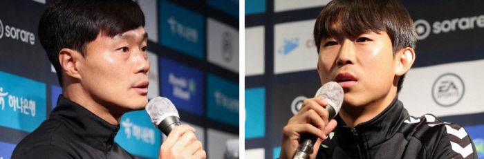 제주 유나이티드 남기일 감독(왼쪽)과 수원FC 윤빛가람이 7일 열린 K리그 미디어캠프에서 취재진 질문에 답변하고 있다. 프로축구연맹 제공