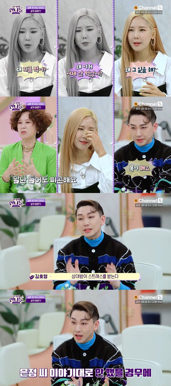 이를 들은 김호영은 "심각하다. 물론 조언을 할 수는 있다"면서 "상대방이 스트레스를 받는다는 말은 조언으로 끝나는 게 아니고 은정 씨 얘기대로 안 했을 때 돌아오는 압박에 대해 스트레스를 받았을 것"이라고 진단했다.