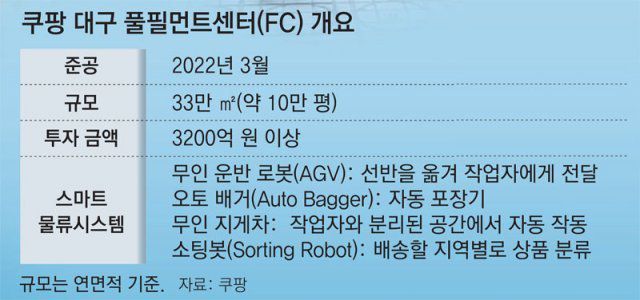 물류자동화는 최근 물류업계의 가장 큰 화두다. 각 업체가 첨단기술을 통해 노동집약적 구조를 벗고 기술집약적 고부가가치 산업으로 탈바꿈하기 위해 경쟁 중이다. 쿠팡은 대구 FC에 자동화 물류 기술을 확대하고 관련 기술 인력 등 2500명의 신규 고용을 창출할 계획이다.