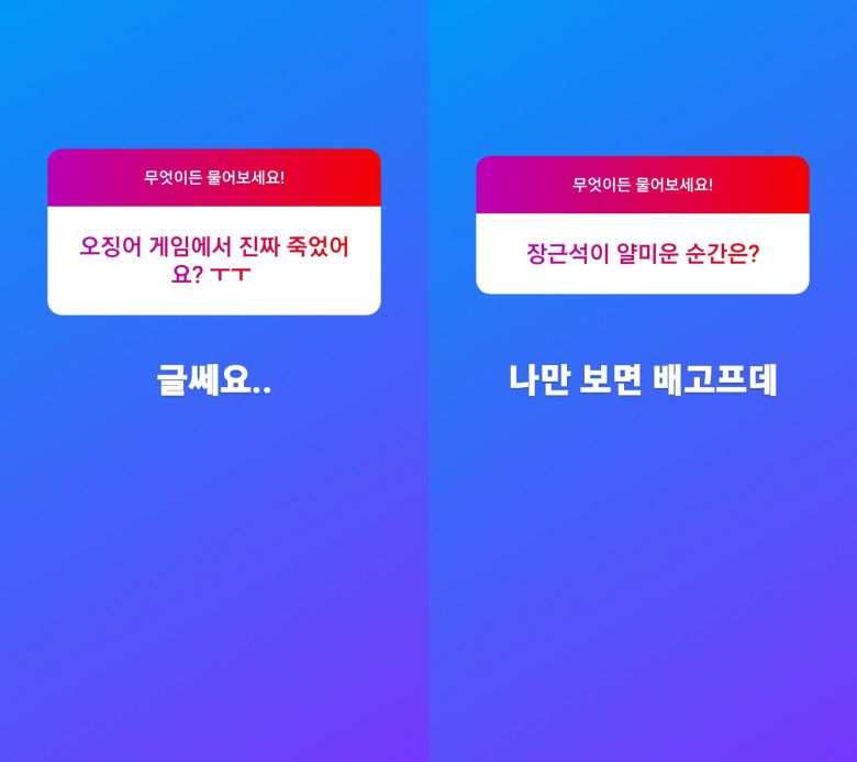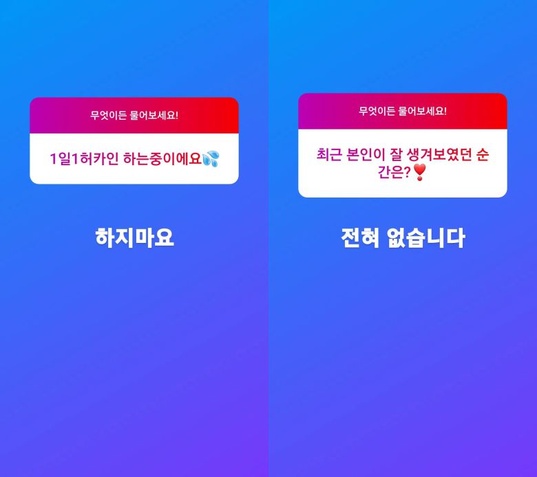 그는 '코카인 댄스 2탄 하실 생각 없나요'라는 질문에 "절대 없어요"라고 단호하게 말했다. '1일 1허카인'을 한다는 팬에게는 "하지마요"라고 전했다.