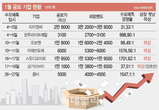 1월 공모기업 ‘따상’에…평균 수익률 118%