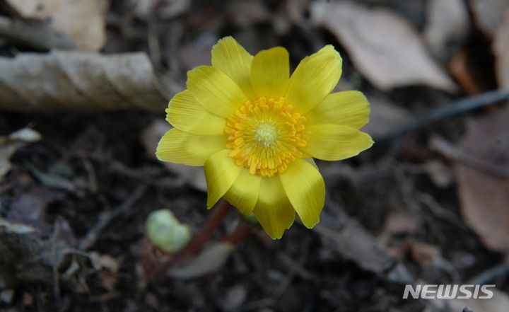 [울산=뉴시스] 배병수 기자 = 7일 오후 울산 북구 황토전마을 일원에 봄소식을 전하는 복수초꽃이 활짝 펴 있다. 2023.02.07. bbs@newsis.com. |