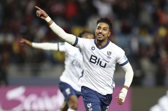 페널티킥으로 두 골을 넣은 살렘 알다우사리. - 8일(한국시간) 모로코 라바트에서 열린 2022 FIFA 클럽 월드컵 4강전 사우디아라비아 알힐랄과 브라질 플라멩구와의 경기에서  페널티킥을 넣은 살렘 알다우사리가 세리머니를 하고 있다. 라바트 EPA 연합뉴스