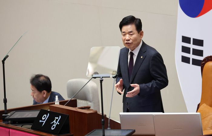 김진표 국회의장이 지난 2일 오후 국회에서 열린 제403회국회(임시회) 제1차 본회의에서 개회사를 하고 있다. |연합뉴스
