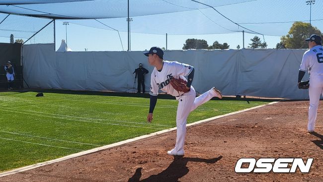 “첫 번째 피칭과 두 번째 피칭 모두 밸런스를 잡고 마운드에 적응하는데 중점을 뒀다”라고 말한 신영우는 “공을 던질 때 내가 가지고 있는 리듬을 계속 똑같이 유지하고 메커니즘에 필요한 요소들을 신경쓰며 공을 계속 던지고 체크하고 있다. 지금은 직구를 위주로 던지고 있는데 앞으로는 조금씩 투구수를 늘리면서 변화구도 많이 던질 생각이다”라고 스프링캠프 계획을 설명했다.