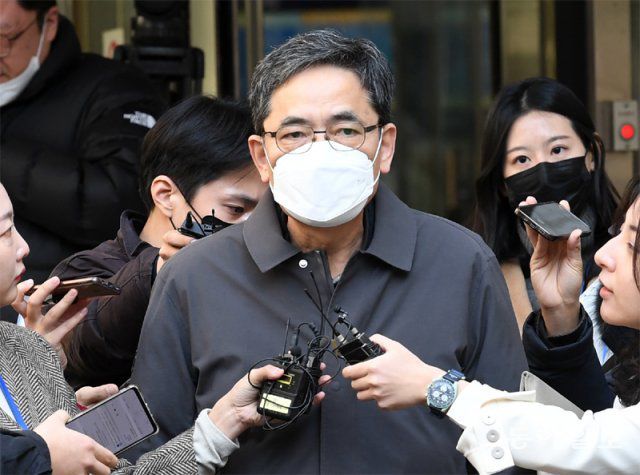 대장동 일당으로부터 50억 원의 뇌물을 받은 혐의로 기소된 곽상도 전 국민의힘 의원이 8일 오후 서울 서초구 서울중앙지법에서 1심 선고가 끝난 후 입장을 밝히고 있다. 송은석 기자 silverstone@donga.com