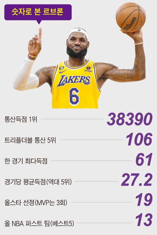 르브론 3만8390점, NBA 통산득점 1위… 39년만에 압둘자바 넘어