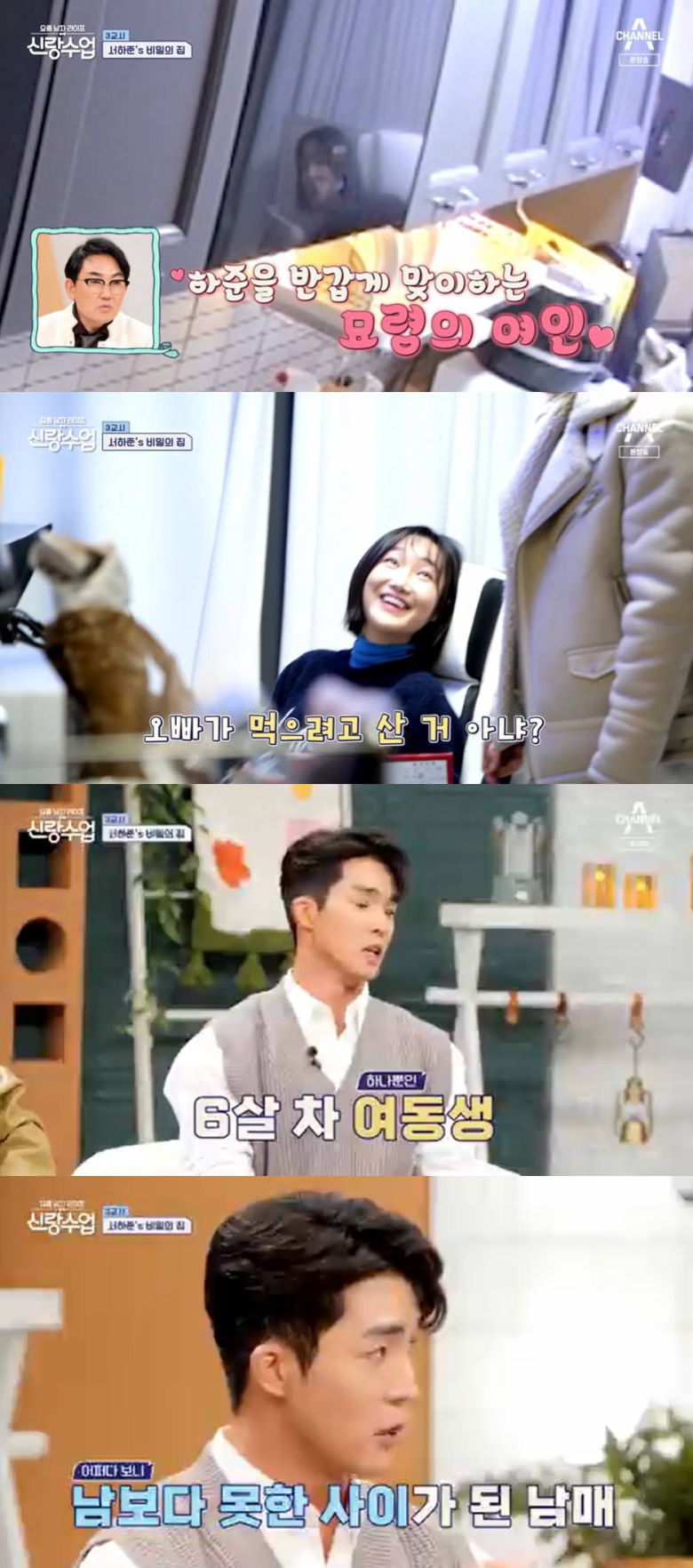 8일 방송된 채널A '요즘 남자 라이프 - 신랑수업'(이하 '신랑수업')에서는 운동 후 꽃단장까지 하고 의문의 상대를 찾아간 서하준의 모습이 그려졌다. 서하준을 "오빠"라고 부르는 모습에 패널들은 모두 여자친구라고 의심했다. 하지만 이 사람은 서하준의 여동생이었다.