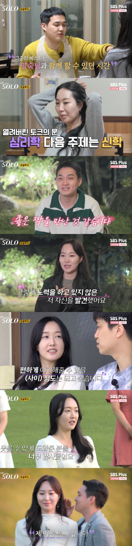 8일 방송된 SBS 플러스 ‘나는 솔로’ 모태솔로 마지막 회에서 영식은 슈퍼데이트권을 영숙에게 썼다. 솔로 나라 입소 첫날 순자에게 마음을 표현한 덕분에 얻은 슈퍼데이트권이지만 영숙에게 쓰며 “대화하면 할수록 더 알아가고 싶다. 필이 통하는 것 같다”고 커플을 확신했다.