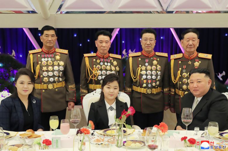 앞서 조선중앙통신은 한국시간 7일 김 위원장 부부가 김주애와 함께 군 장성 숙소를 찾았다고 보도하면서 김주애가 헤드테이블에서 김 위원장 부부 사이에 앉고 그 뒤로 군 장성들이 병풍처럼 서 있는 사진 등을 공개한 바 있다.